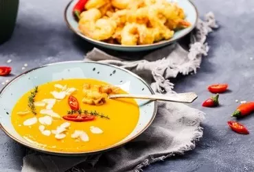 Zupa dyniowa – warto ją wpisać na stałe do jesiennego menu. Nie tylko wspaniale rozgrzewa, ale również wybornie smakuje. Co więcej, idealnie komponuje się z wieloma dodatkami, dzięki czemu można podawać ją na wiele różnych sposobów. My proponujemy wersję z krewetkami w tempurze. Palce lizać!
