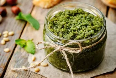 To propozycja dla wegan, karmiących matek i studentów! Aszitaba jest zielonym warzywem, bogatym w składniki odżywcze. W tym fantastycznym pesto, które obfituje w witaminy B6 i B12, występuje w doskonałym połączeniu z bazylią, drożdżami spożywczymi i orzechami makadamia. Nie jest łatwo zdobyć świeżą aszitabę, lecz jej uprawa jest bardzo prosta i warto podjąć ten wysiłek!