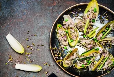 Ma być pysznie, ma być szybko, ma być zdrowo! Jeśli tak, to z pewnością tym wymaganiom sprosta przepis na ekspresową przekąskę, w której w roli głównej znajdziecie cykorię. Okraszona farszem na bazie ryżu, tuńczyka i warzywnych dodatków zaskoczy niejednego smakosza. Smacznego!